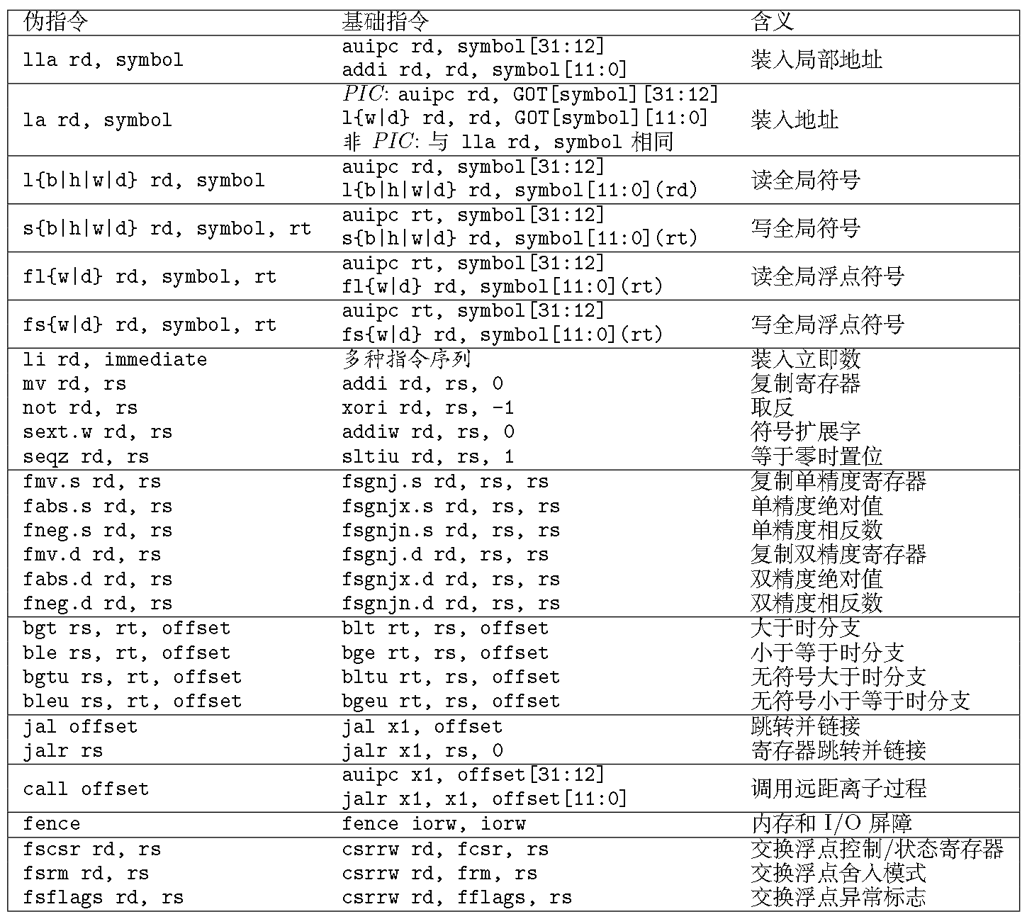 主要分为依赖于零寄存器x0和与零寄存器x0无关的伪指令两类,它们分别是32条和28条