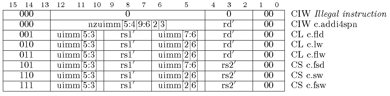 RV32C的汇编和机器码的对应图(bits[1:0]=00, bits[1:0]=01, bits[1:0]=10)